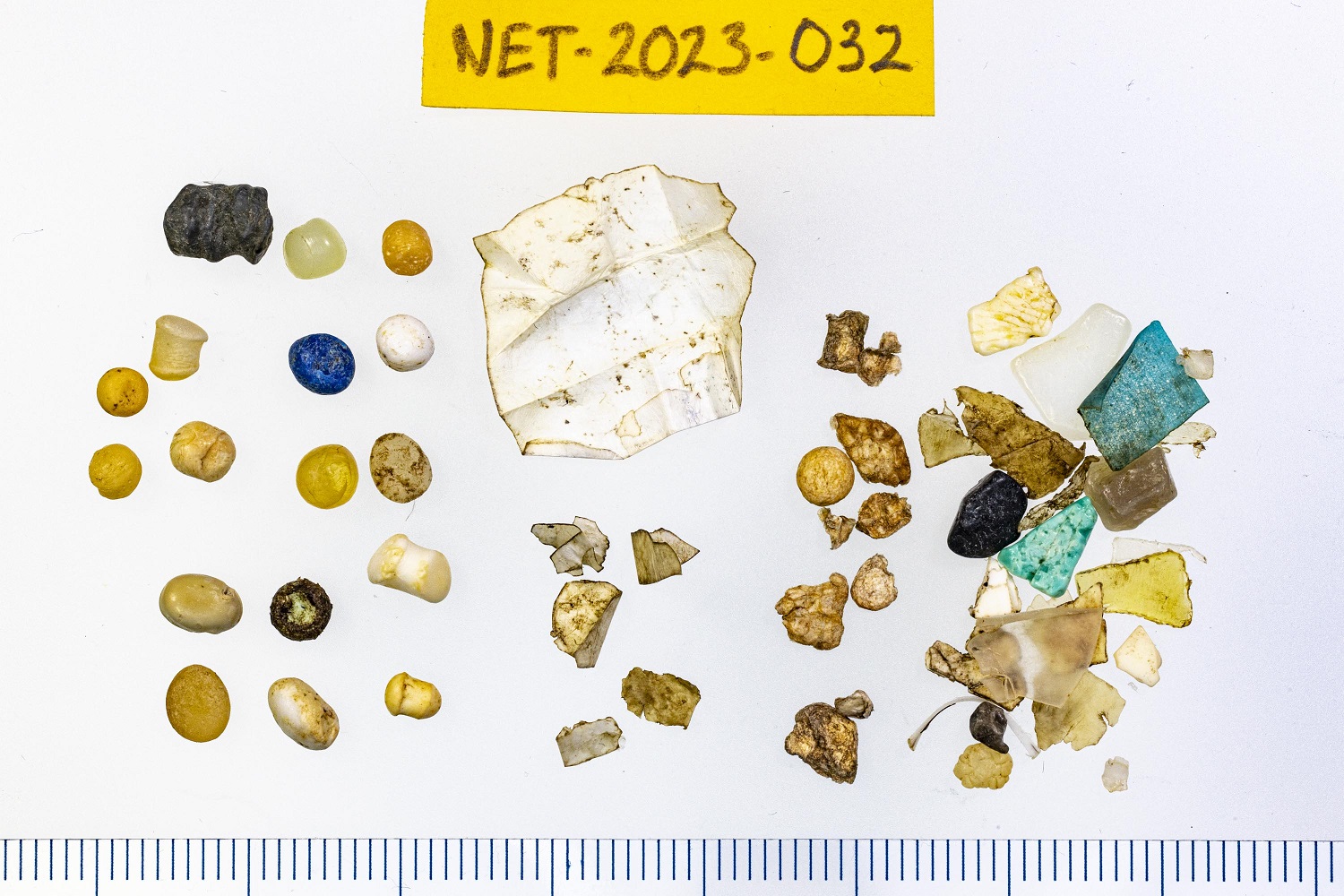 A microscope is required to sort the plastic. ‘We separate the plastic from organic materials and then separate the plastic according to type,’ Kühn explains. The EU requires plastic to be divided into two categories. The first is the pellets, small grains that are used in manufacturing plastic products. The second is consumer plastics, which is basically the ‘other’-category. The scientists categorise even further on their own initiative. ‘We believe that this data will prove valuable in time.’