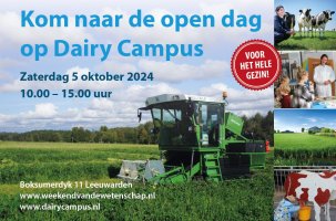 12 september 2024 - category_news - Zaterdag 5 oktober van 10.00 - 15.00 u ben je welkom op innovatiecentrum Dairy Campus in Leeuwarden. Dan openen wij de staldeuren tijdens het Weekend... -