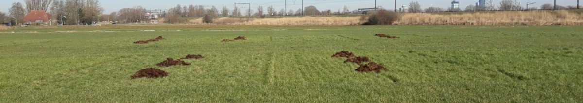 Het proefveld op Dairy Campus bestaat in totaal uit vier verschillende behandelingen die verschillen in bemesting en maaibeheer. Eén van de behandelingen heeft een uitgestelde maaidatum, die extensief bemest is. In begin maart hebben medewerkers van Dairy Campus hier ruige mest opgebracht.