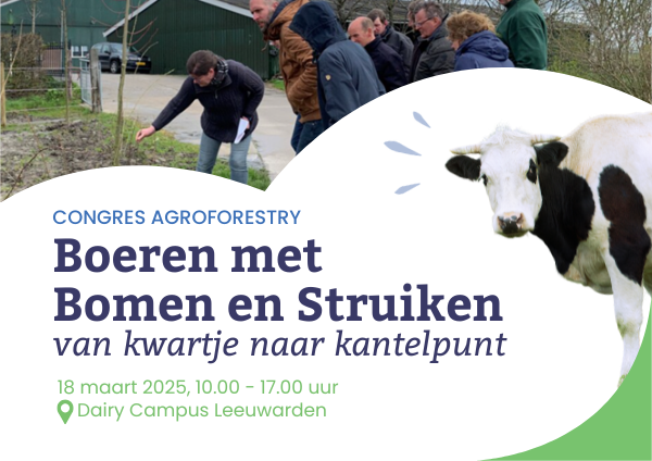 Steeds meer boeren ontdekken de voordelen van Agroforestry (AF): bomen en struiken die niet alleen bijdragen aan biodiversiteit, maar ook een extra inkomstenbron en een toekomstbestendige bedrijfsvoering bieden. Maar hoe zet je de volgende stap? Welke kennis is nodig? En hoe kan beleid helpen bij opschaling?