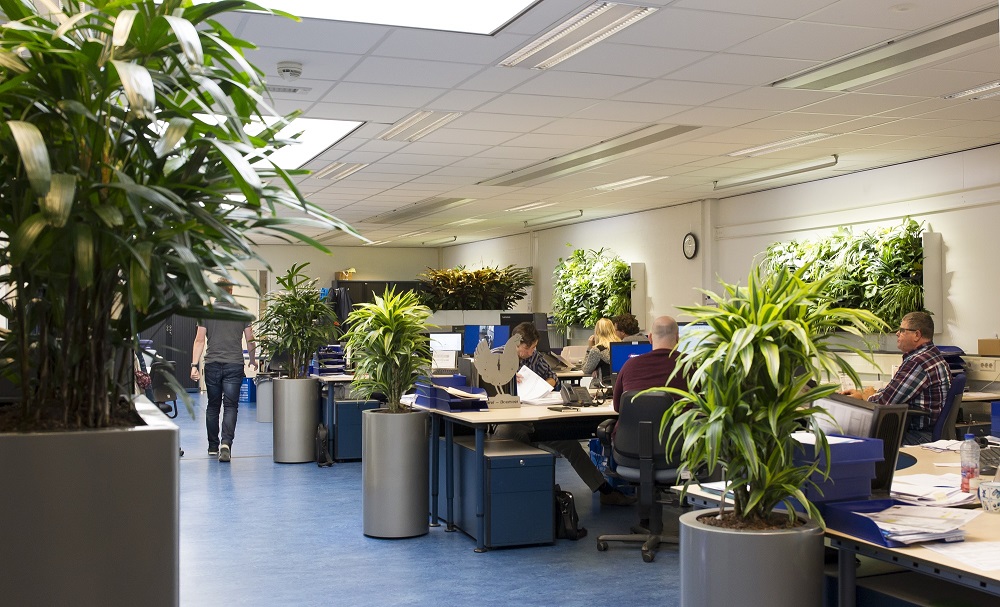 Werken in een groene oase heeft dus zijn voordelen: het brengt vocht in de lucht, planten kunnen de lucht reinigen en creëren een fijne omgeving. Wageningen University & Research voerde onderzoek uit op drie locaties, waar een controle- en interventieruimte zijn vergeleken. Dat gaf opvallende resultaten: na het neerzetten en ophangen van planten verbeterde de relatieve luchtvochtigheid met gemiddeld vijf procentpunt; in de winter zelfs met zeventien procentpunt. Mensen beoordelen de werkplek als aantrekkelijker. De gemoedstoestand van medewerkers is na de beplanting positiever en ze zijn positiever over hun eigen functioneren. Medewerkers melden zich minder vaak ziek - de daling bedraagt twintig procentpunt - en de herstelbehoefte van mensen is onverwacht hoger na beplanten.