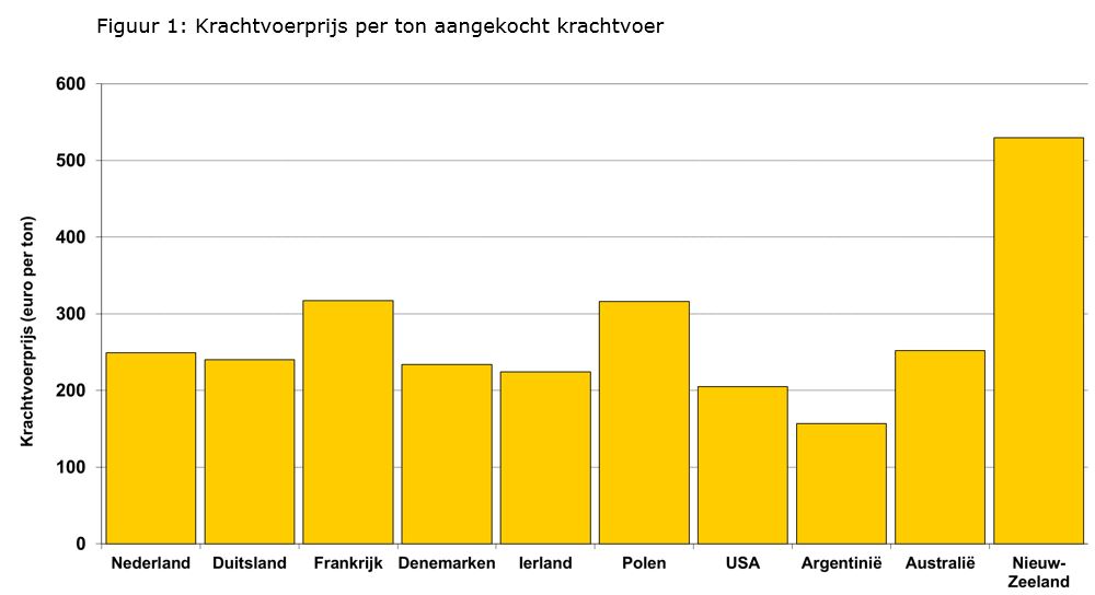 De krachtvoerprijs op een gemiddeld Nederlands melkveebedrijf was in 2017 ongeveer 250 euro per ton. Ten opzichte van andere Europese landen is dit een gemiddelde prijs. Op de melkveebedrijven in Duitsland, Denemarken en Ierland lagen deze prijzen iets lager, variërend van € 220 tot € 240 per ton krachtvoer. De prijs voor krachtvoer in Frankrijk en Polen ligt met ruim € 315 euro per ton een stuk hoger dan in Nederland. Het krachtvoer is in deze landen ruim 25% duurder dan in Nederland.
