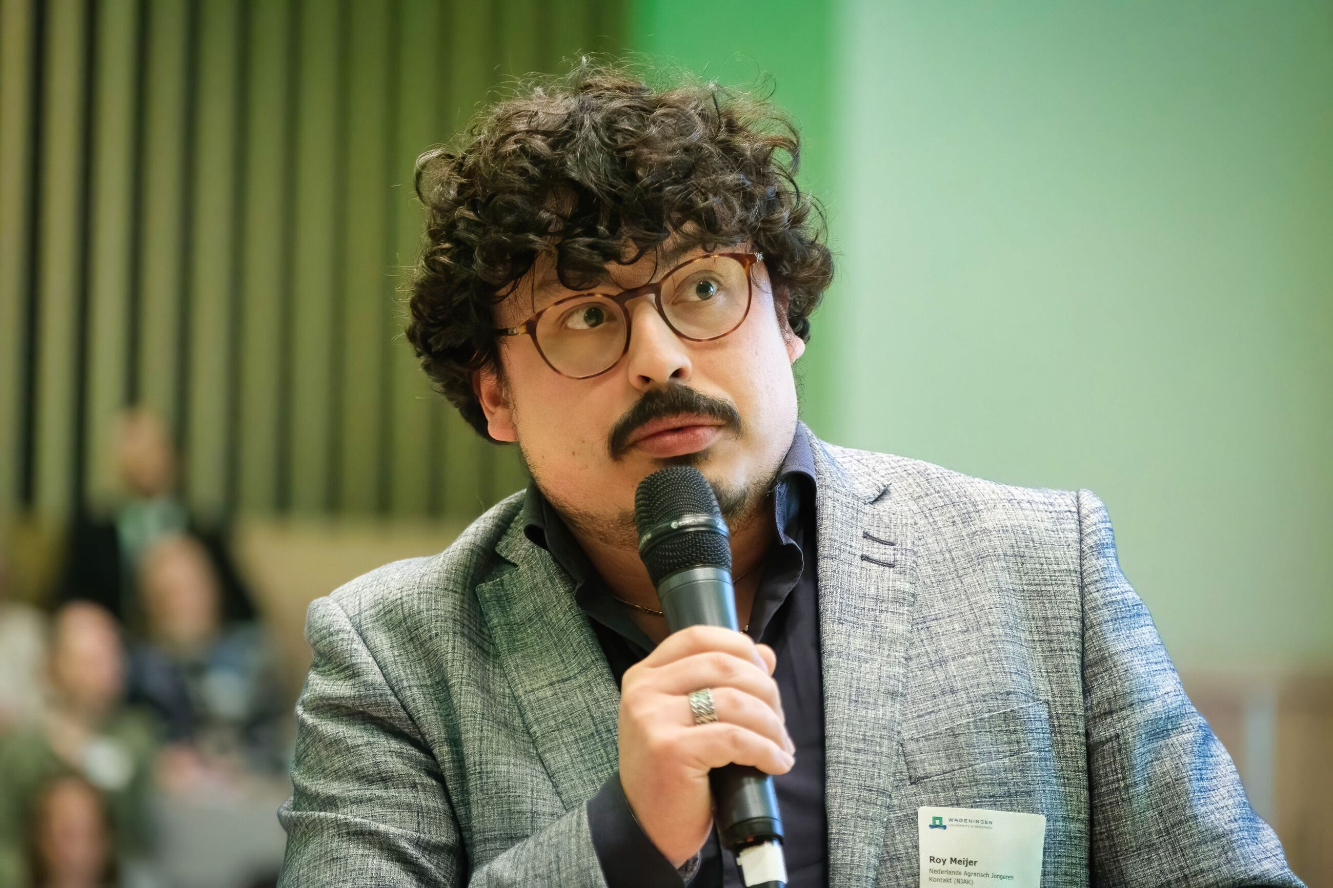 - Roy Meijer, van het Nederlands Agrarisch Jongeren Kontakt, liet een ander geluid horen. Meijer vertelde over zijn vader en opa, die allebei boer waren in een tijd dat er een basisverhaal bestond. Zijn opa boerde toen Nederland opgebouwd moest worden, zijn vader in de tijd van de Koude Oorlog. Nu hij zelf een boerenbedrijf runt, ziet hij geen basisverhaal meer. Meijer sloot af met een droevige mededeling: de agrarische sector vergrijst. Jonge boeren weten niet waar ze aan toe zijn, en vragen zich af hoe lang ze nog moeten wachten op de samenleving.