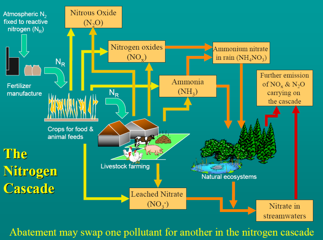 Nitrogen in the air leads to the formation of ozone (smog), and it also makes a major contribution to particulates, resulting in negative health effects. The nitrogen policy is aimed in part at limiting emissions of ammonia and nitrogen oxides.