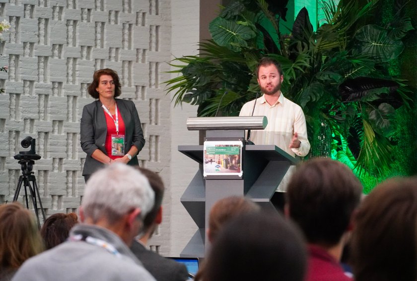 Eén van de teams bedacht een inventieve oplossing om de houdbaarheid van voedsel in de supermarkt aan te bieden als een speciale service. Omdat hun idee als beste uit de bus kwam, mochten zij het tijdens Circular@WUR presenteren.